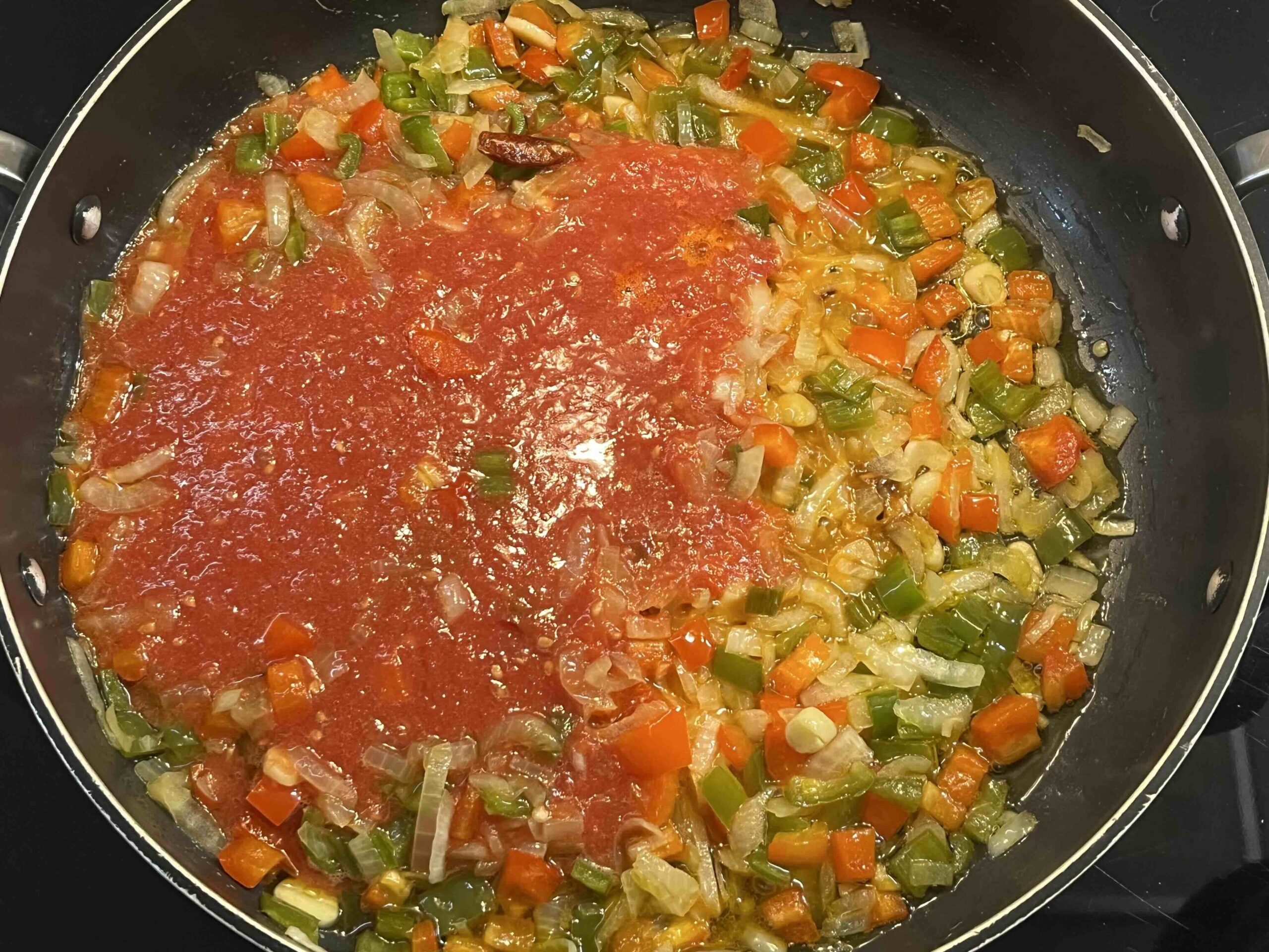 Añadimos el tomate, la guindilla y dejamos cocinar otros 15’.